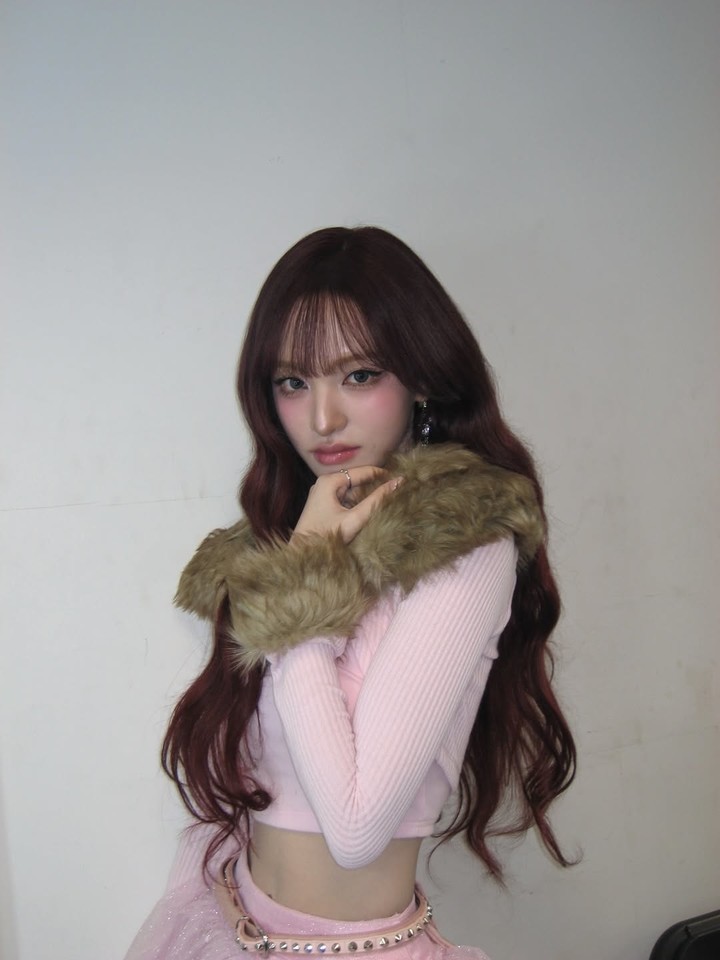 公開された写真の中で、リズは淡いピンクのオフショルダーのトップスにブラウンカラーのファーを羽織ったファッションで、甘くも致命的なバックステージの雰囲気を完成させた。Y2Kムードが漂うスタイルで、ラブリーさと高貴な雰囲気を同時にアピールした。