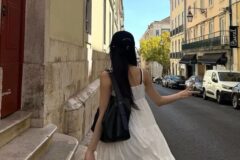 「エマージング・アーティスト1位」イソの清楚夏コーデ イソの夏のコーディネートは、ホワイトワンピースとブラックアイテムで洗練された印象を与えています。 -